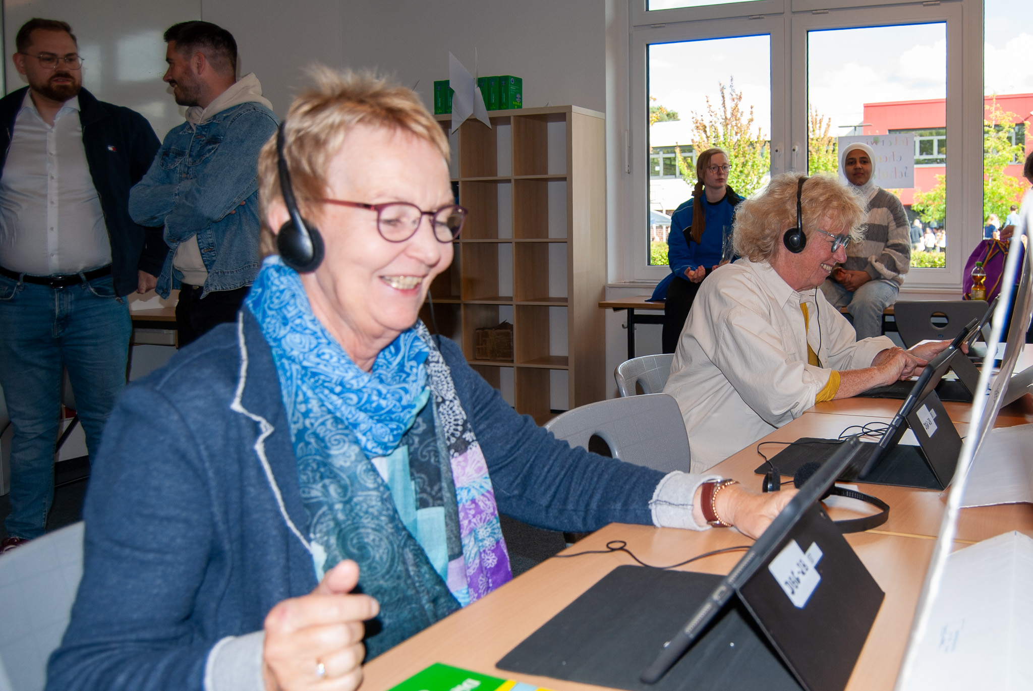 Neben den Präsentationen sorgten ein buntes Rahmenprogramm mit Kaffee- und Kuchenbuffet, Foodcorner, Menschenkicker, einem Bläserkonzert sowie zahlreichen Mitmachspielen für beste Unterhaltung. Aktuelle Schülerinnen und Schüler, Eltern, Ehemalige und Kolleginnen und Kollegen nutzten die Gelegenheit, ins Gespräch zu kommen und gemeinsam zu feiern.