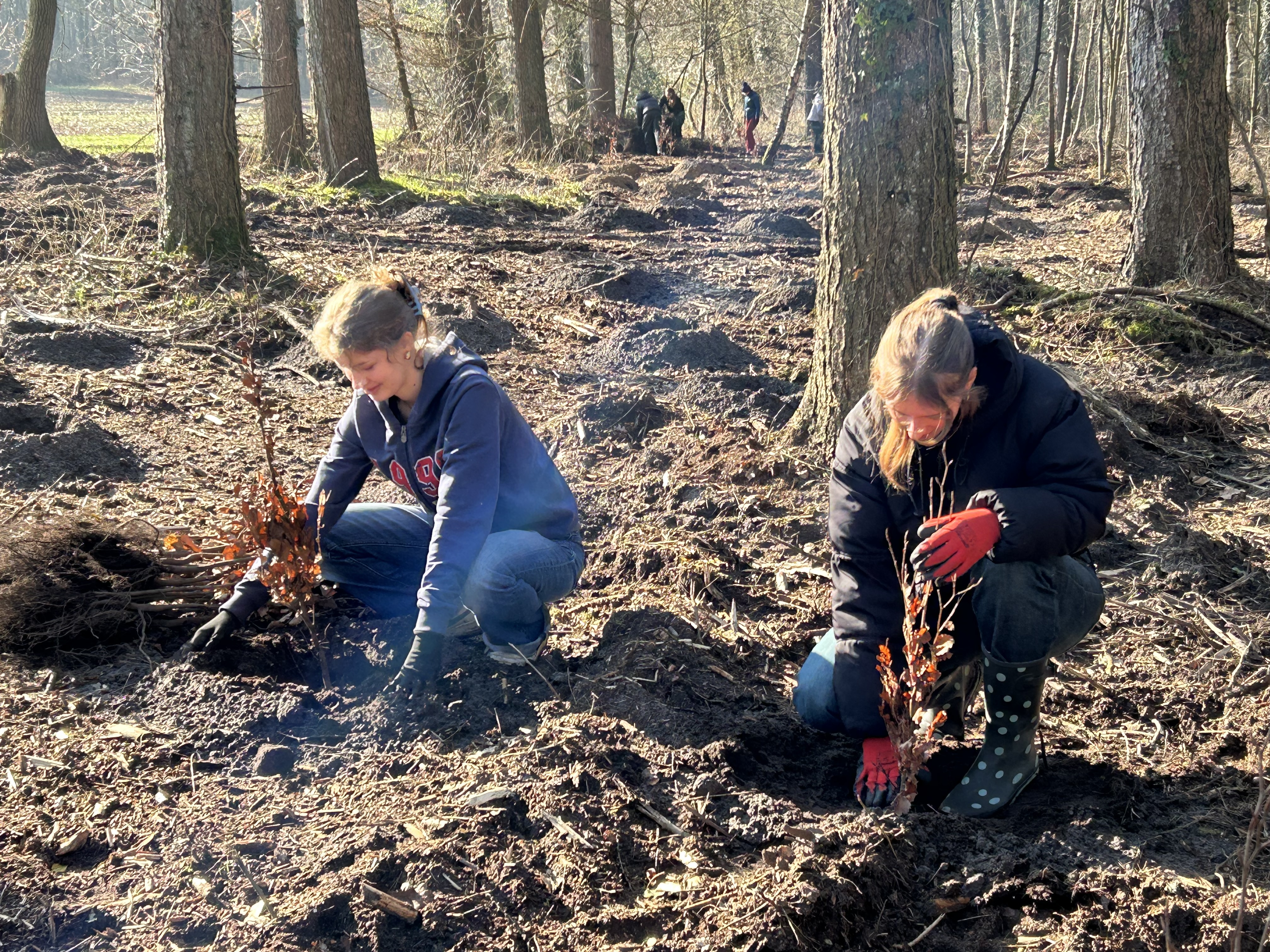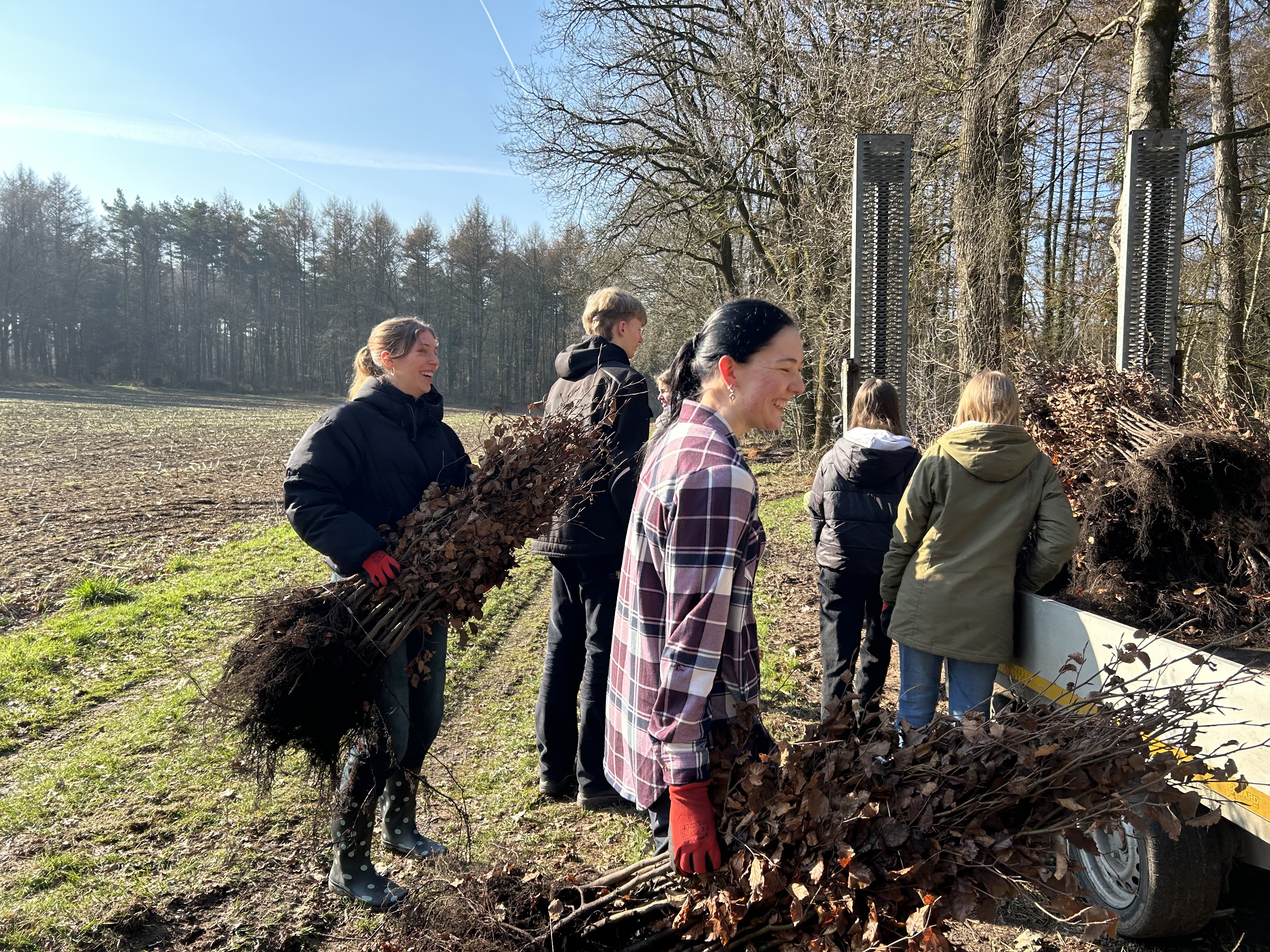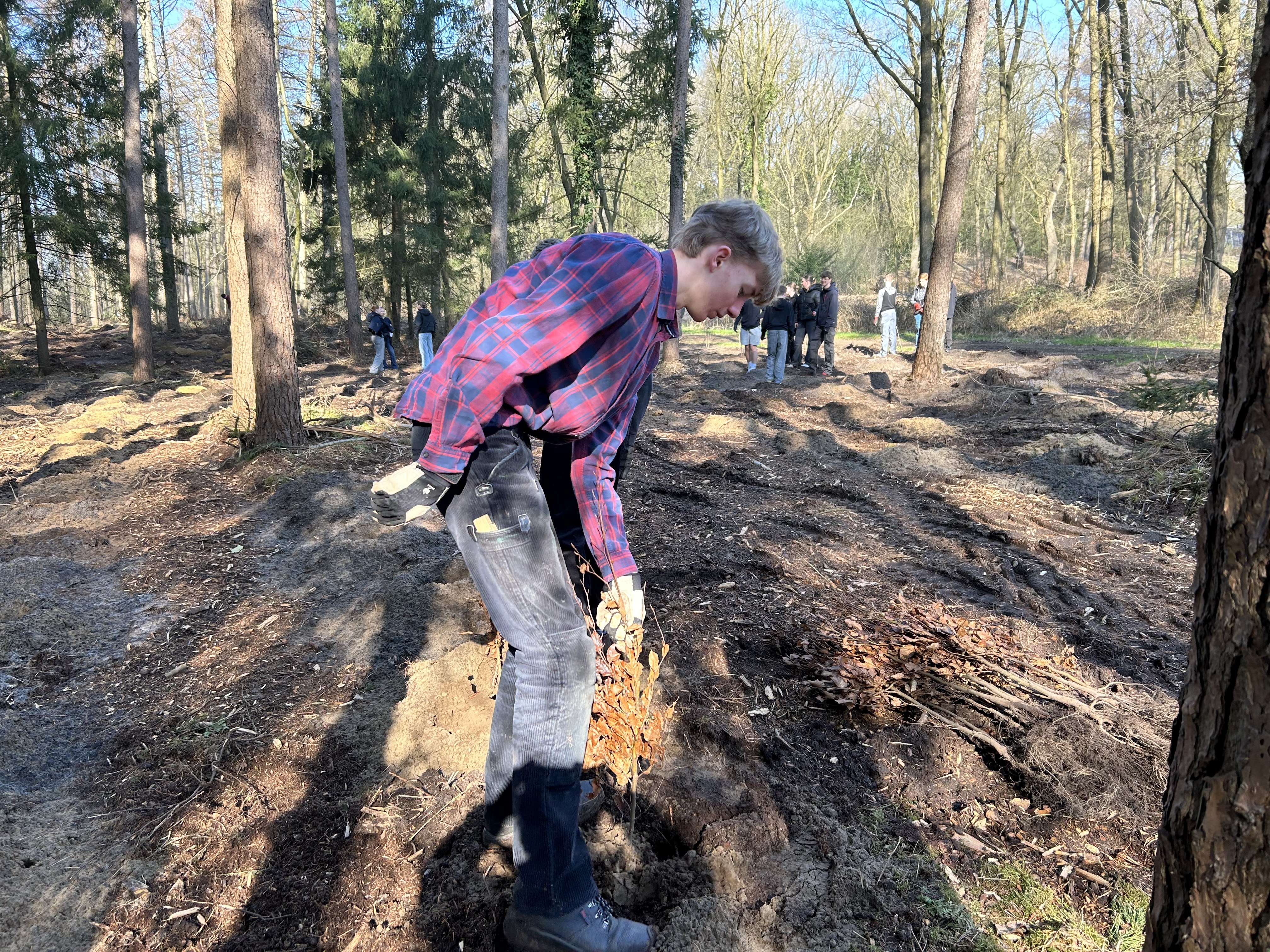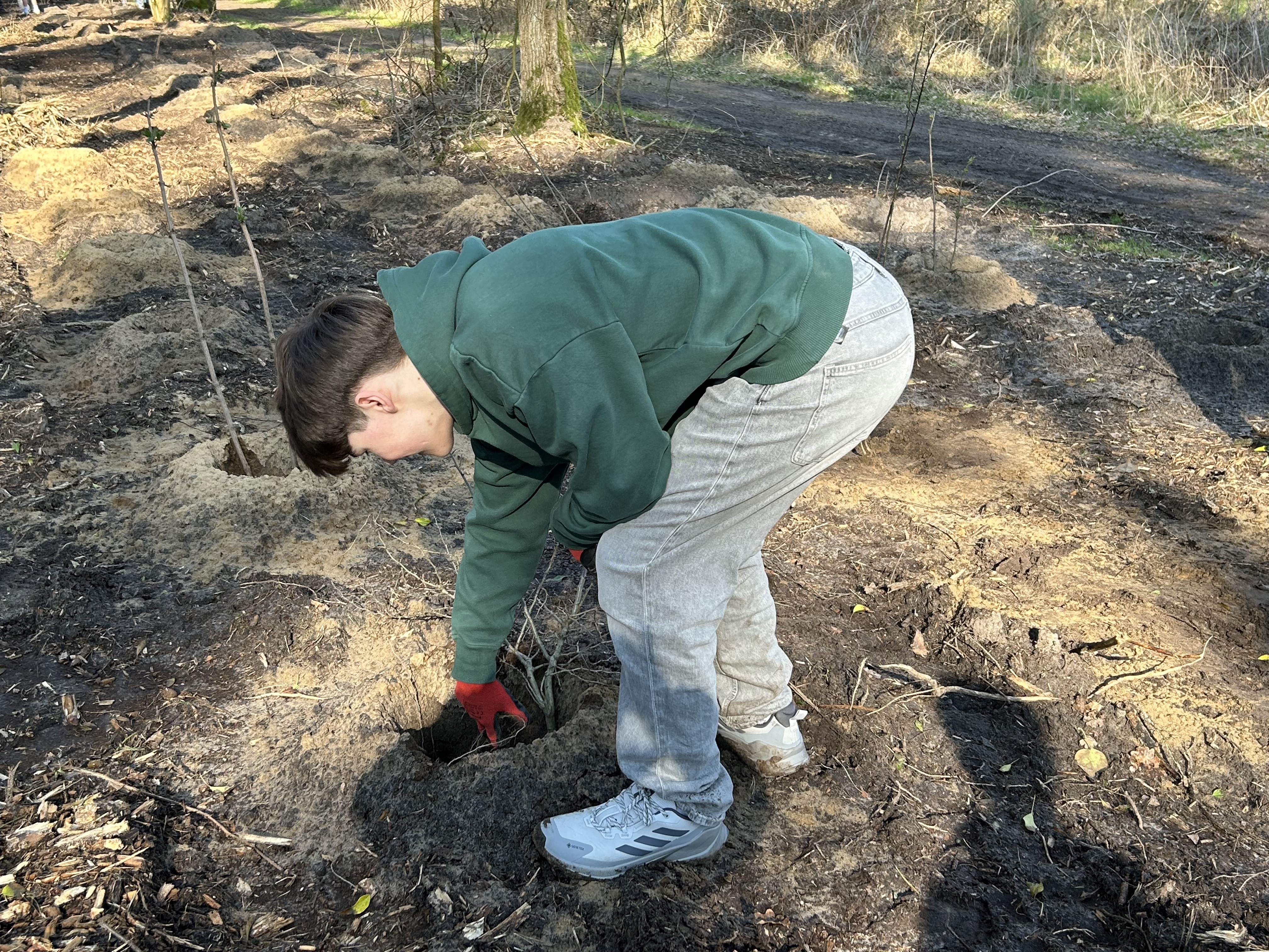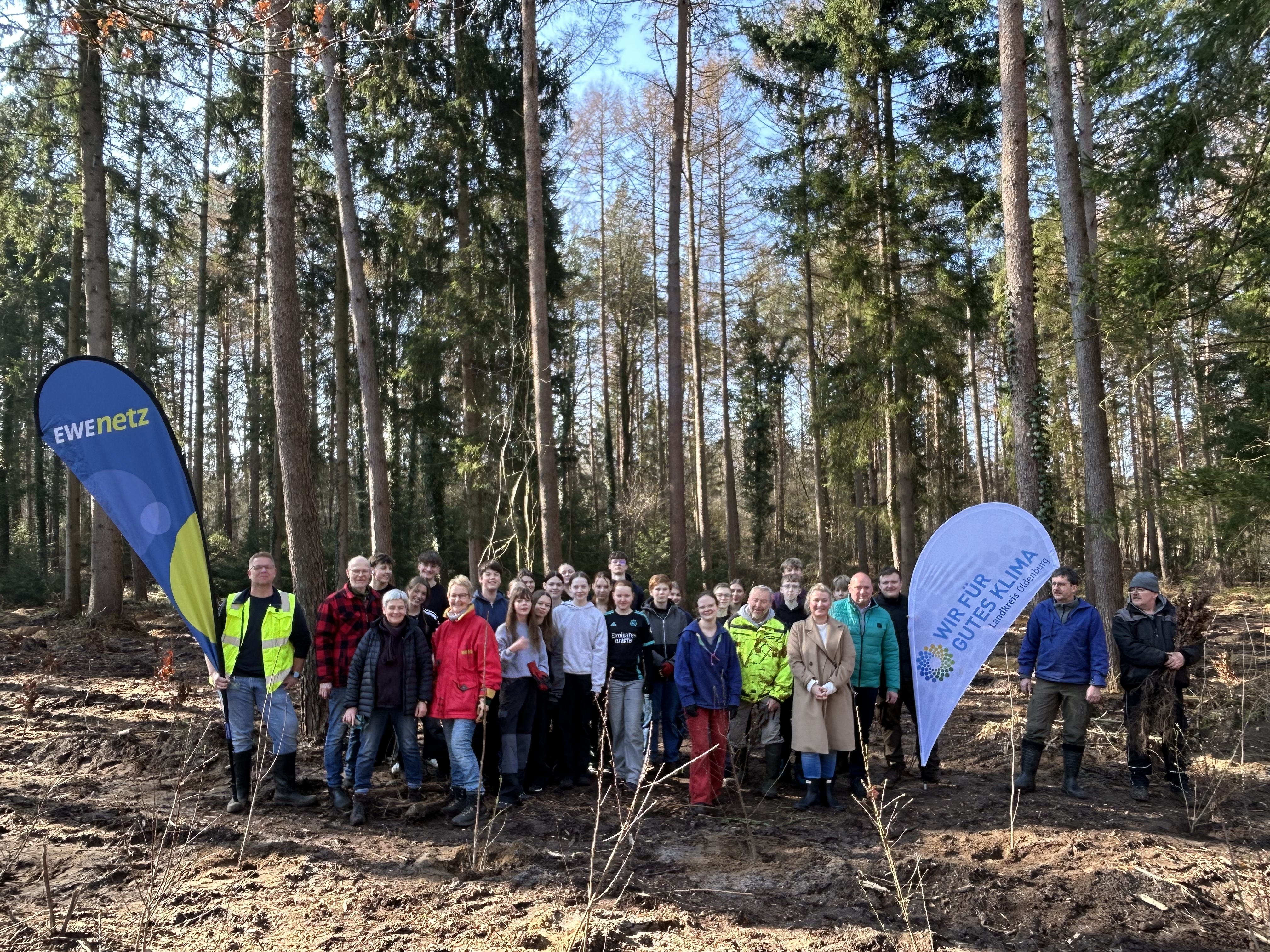 Am 19 März machten sich die Schüler*innen der Klassen 8a und 11b auf den Weg in ein Waldgebiet der Sager Schweiz, um ein großartiges Umweltprojekt umzusetzen: die Pflanzung von 2000 Bäumen insbesondere Buchen. Finanziell unterstützt wurde die Aktion durch den Landkreises Oldenburg und die EWE Netz GmbH. Begleitet von Frau Hohlen, Frau Nüske und Herrn Rohde startete die Gruppe bei schönstem Frühlingswetter. Vor Ort wurden die Schülerinnen und Schüler herzlich von dem Leiter der Pfadfinderbildungsstätte Dirk von der Heide sowie allen Organisator*innen und Mitarbeiter*innen empfangen, die den Tag sorgfältig vorbereitet hatten. Nach einer Einführung erhielten alle eine praktische Anleitung, wie die jungen Bäume gepflanzt werden sollten. Dabei stand stets Unterstützung bereit, um Fragen zu beantworten und bei der Arbeit zu helfen. Mit Begeisterung setzten die Schüler*innen Baum für Baum in die Erde.